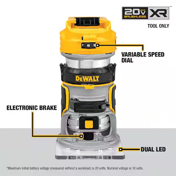 • DEWALT 20V MAX XR Fixed Base Compact Router (Tool Only)