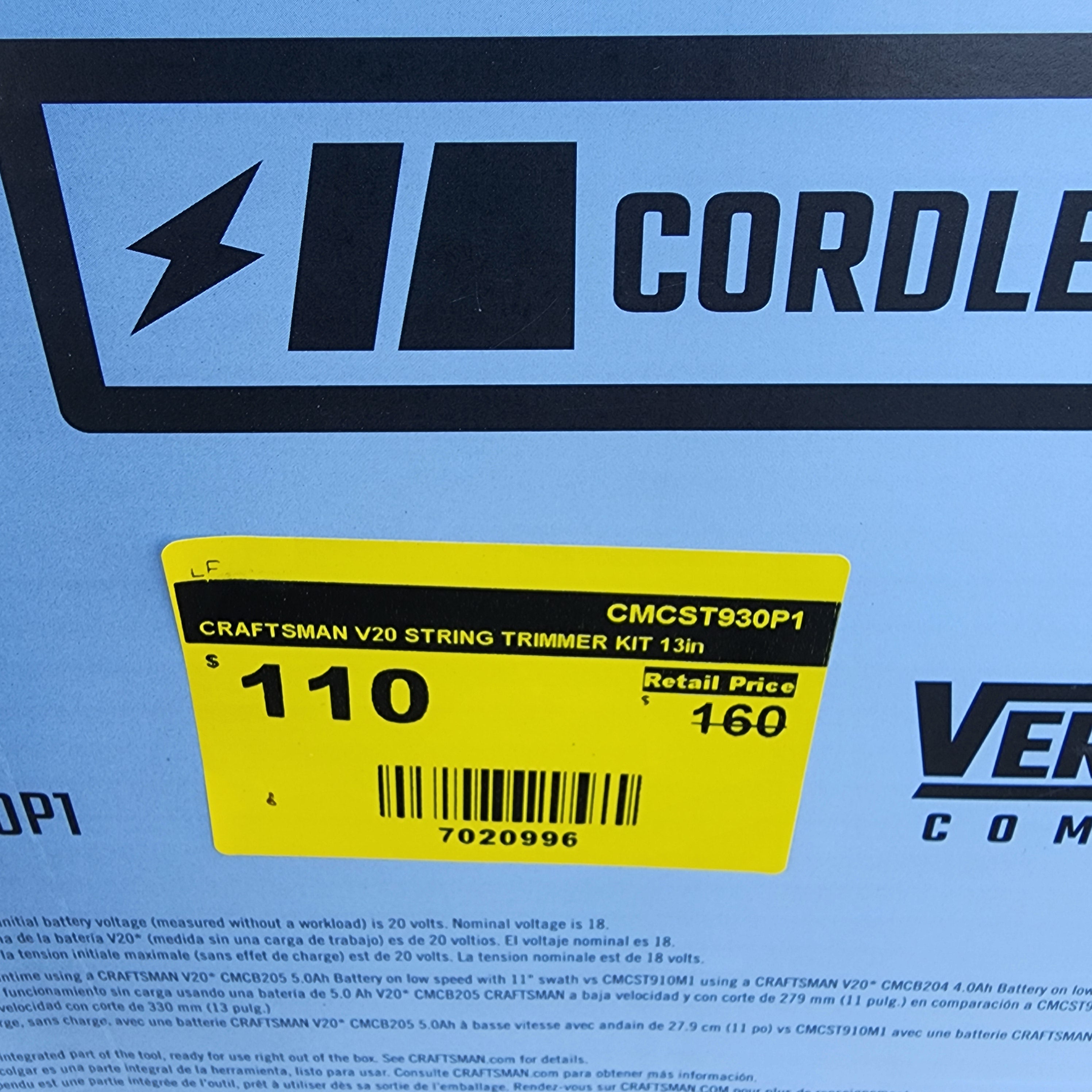 CRAFTSMAN V20 Brushless RP 20V MAX 13-Inch Straight Shaft String Trimmer Kit