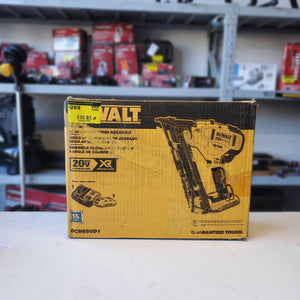 This DEWALT 20V MAX XR 15-Gauge Cordless Finish Nailer Kit is open box and barely used. It has been tested and is fully functional.