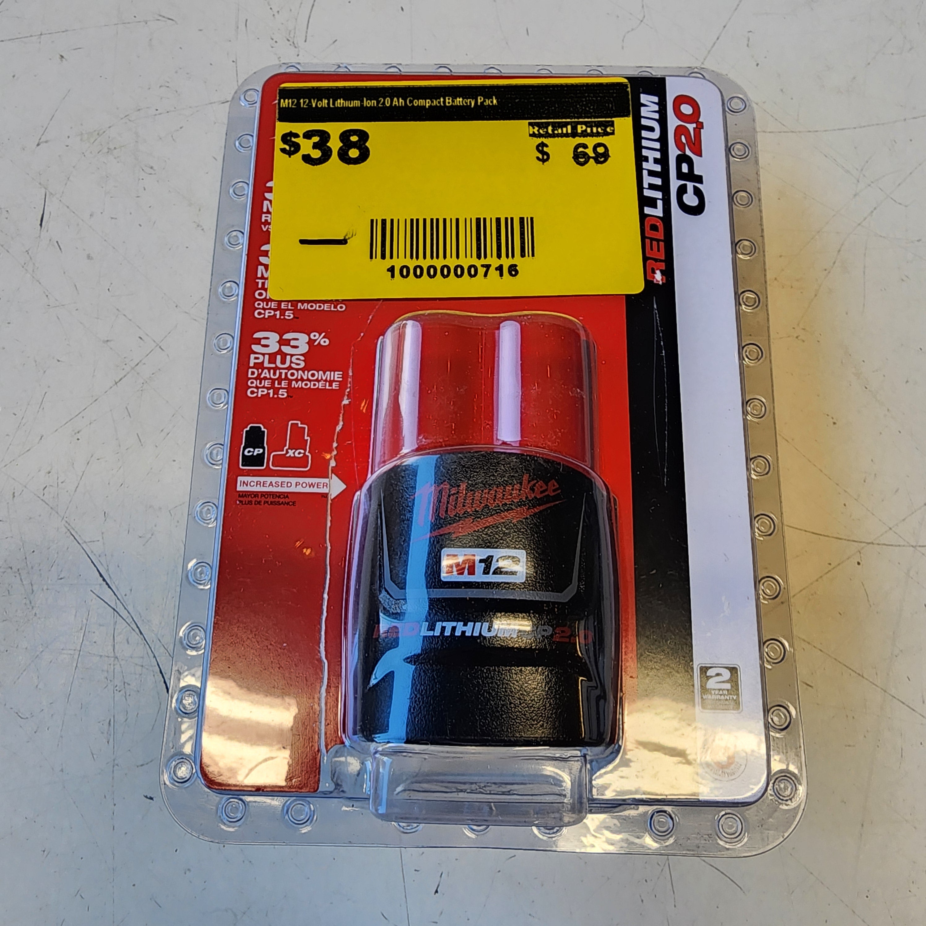 The Milwaukee M12 12V 2.0Ah Compact Battery Pack is designed to power Milwaukee M12 cordless tools. With a 2.0 amp-hour capacity, this lithium-ion battery provides reliable performance for light to medium-duty applications.
