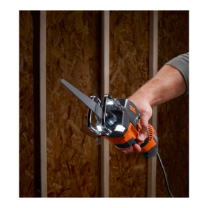 Powered by a 6 Amp motor with THRU COOL Technology, this corded reciprocating saw delivers consistent cutting performance while extending motor life by reducing heat buildup. The one-handed, compact design allows improved control in confined areas, while the orbital cutting action increases cutting efficiency through wood, metal, and construction materials. The corded configuration provides uninterrupted power without battery limitations.