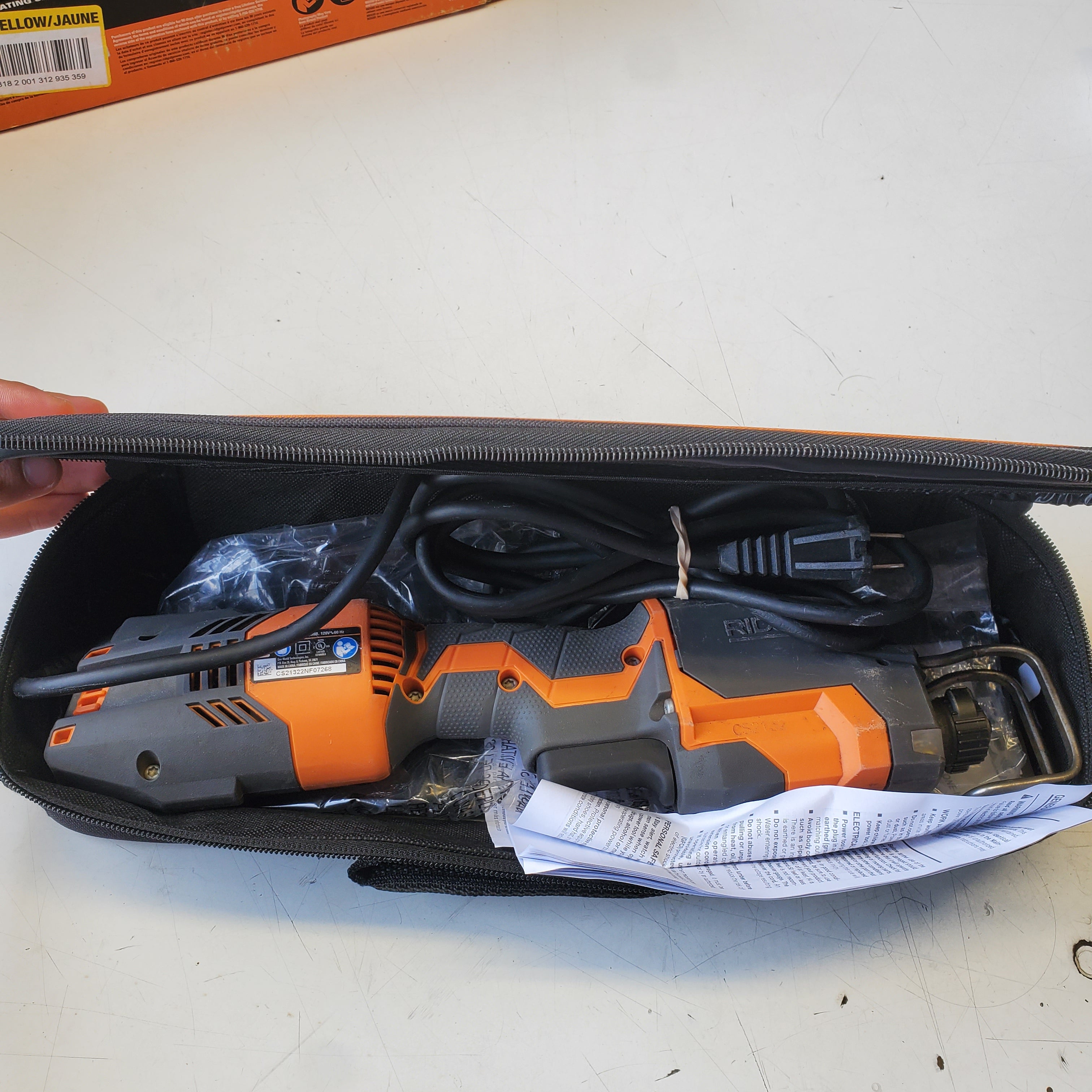 This RIDGID THRU COOL 6 Amp 1-Handed Orbital Reciprocating Saw Kit is open box and barely used. It has been tested and is fully functional.