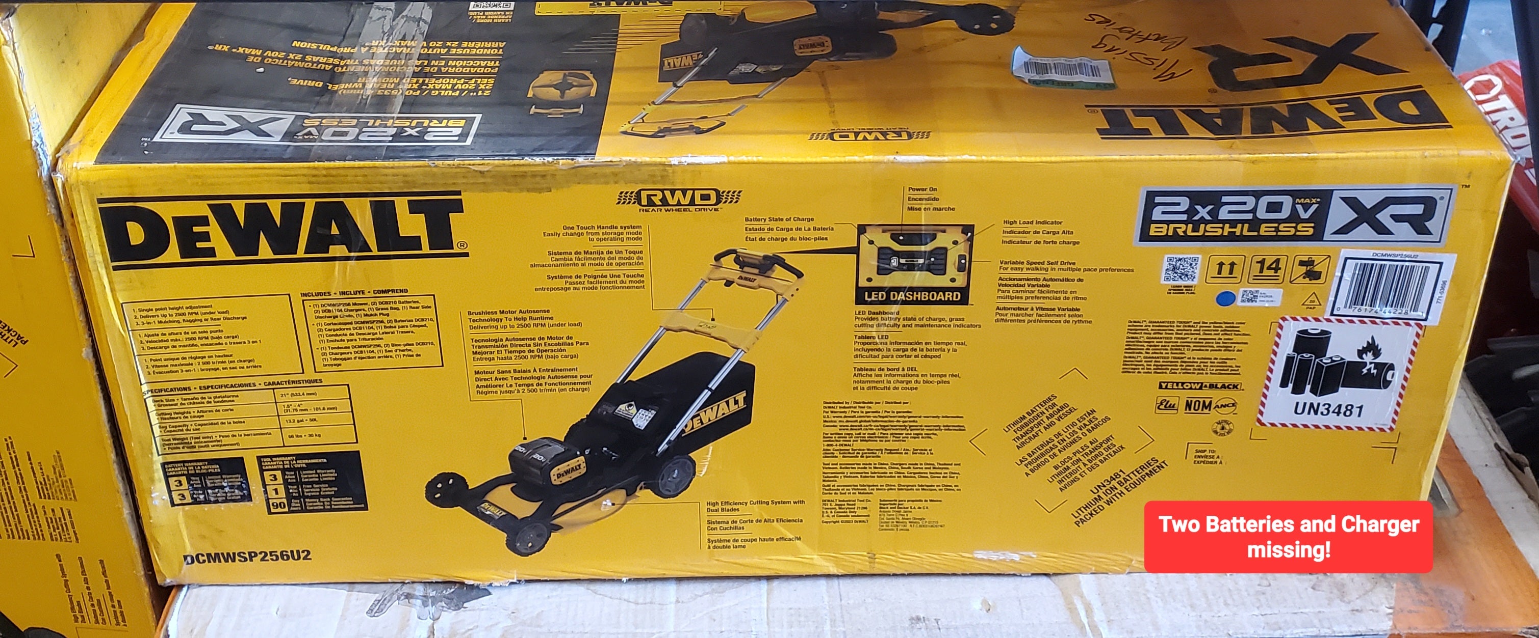 DEWALT 2x20V MAX 21 in. Cordless Self-Propelled Lawn Mower Kit with (2) 10Ah Batteries and Chargers – Open Box | SKU 1012490140