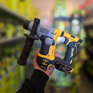 The DEWALT ATOMIC 20V MAX cordless brushless SDS Plus hammer drill is designed for efficient drilling into concrete, masonry, and hard materials while maintaining a compact, lightweight profile. With a 5