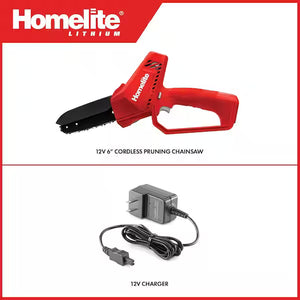 Homelite 12V Lithium 6 in. Battery Pruning Mini Chainsaw with Internal 2.5 Ah Battery and Charger