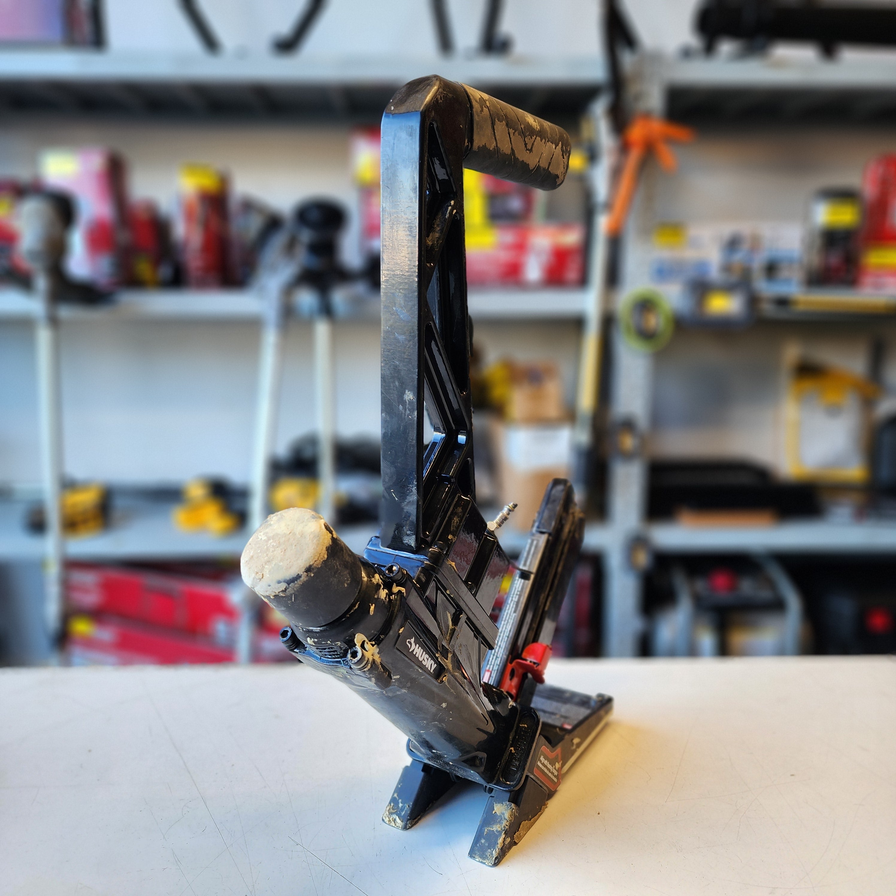 This flooring nailer and stapler is commonly used for installing solid hardwood floors, repairing damaged planks, and securing tongue-and-groove flooring. The pneumatic design allows for repeated fastening with consistent results, making it suitable for contractors, installers, and experienced DIY users working on flooring projects.