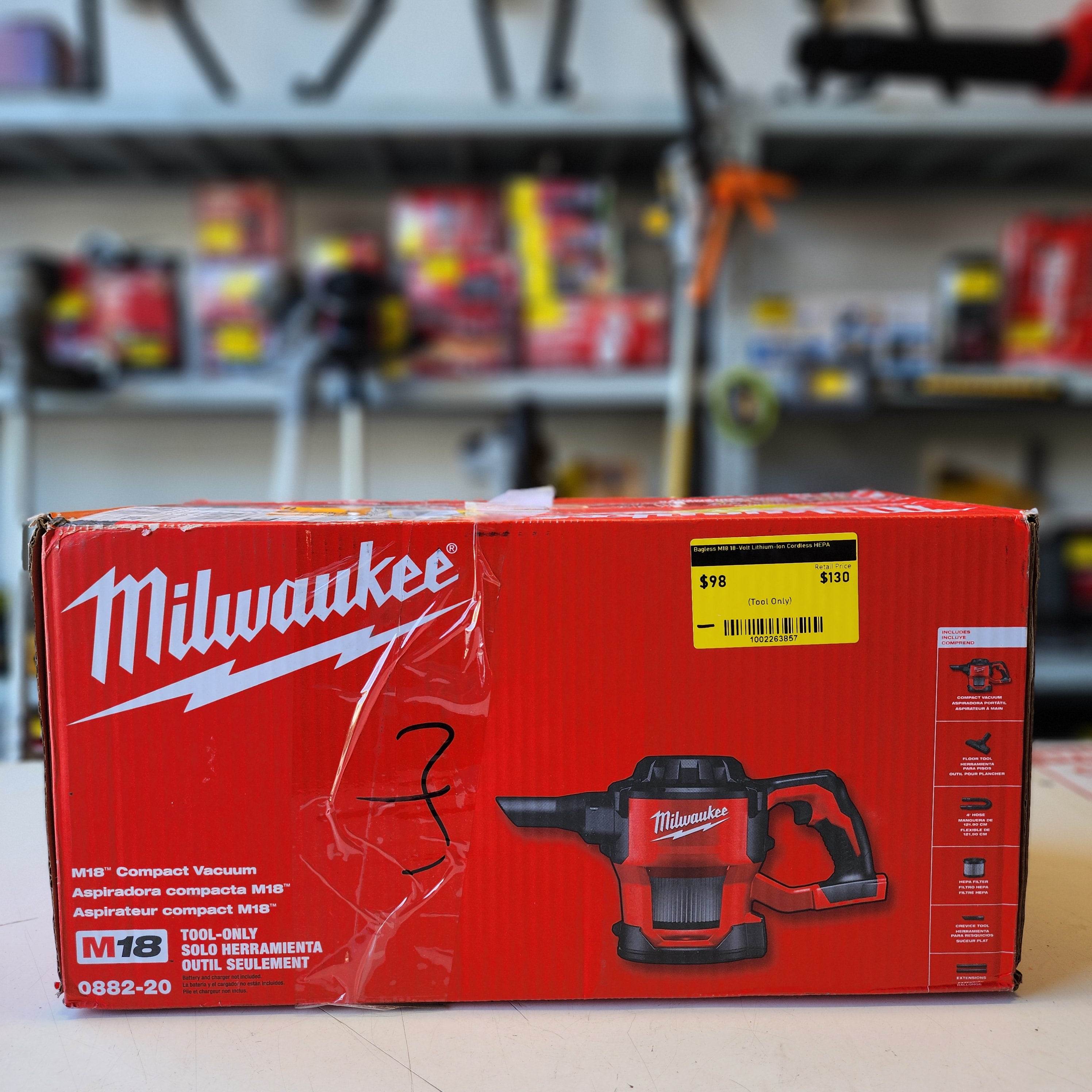 Milwaukee Bagless M18 18-Volt Lithium-Ion Cordless HEPA Compact Handheld Vacuum (Tool-Only)