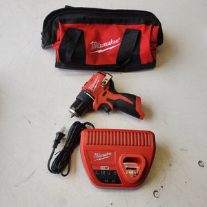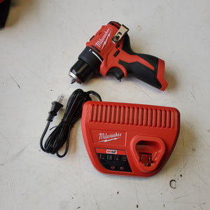This drill driver operates on the Milwaukee M12 battery platform and is suitable for workshop, installation, and general maintenance use. The kit configuration includes the drill driver and standard charging components as originally packaged.