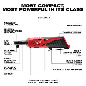 Milwaukee M12 12V Lithium-Ion Cordless 3/8 in. Ratchet (Tool-Only)