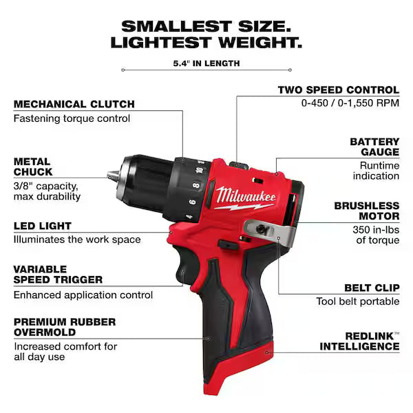 Milwaukee M12 12V Subcompact Brushless Cordless 3/8 in. Drill/Driver (Tool-Only).
