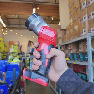 This LED flashlight is commonly used for equipment inspections, repair work, maintenance tasks, and general workspace lighting. Its cordless operation allows users to position the light where needed without being limited by power cords, making it useful in tight spaces or mobile work environments.