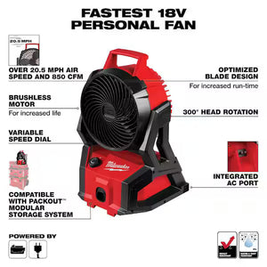 Milwaukee M18 Brushless Cordless PACKOUT Jobsite Fan – Portable Jobsite Cooling (Tool Only, Open Box)