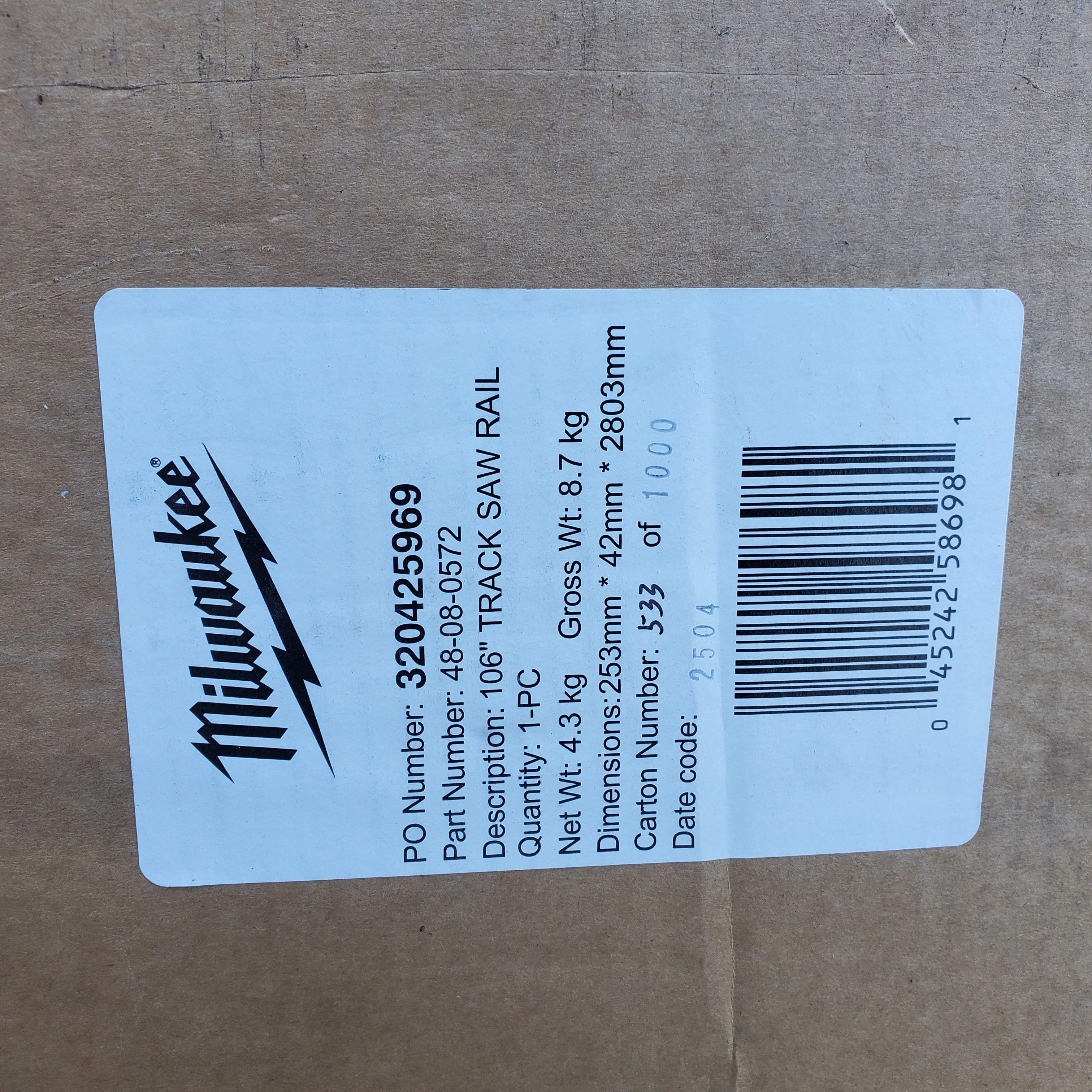 This item is sold in open-box condition. The original packaging has been opened, and the track saw rail has been inspected to confirm proper condition and usability. Minor cosmetic wear to the packaging may be present due to handling or storage.