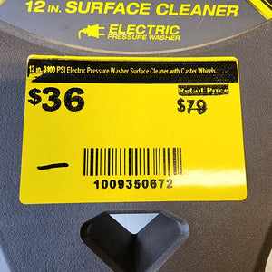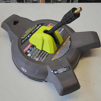 The RYOBI 12 in. Surface Cleaner is designed to provide even cleaning results on flat outdoor surfaces. Rated for use with electric pressure washers up to 3100 PSI, this attachment helps reduce streaking and improve efficiency compared to standard spray nozzles.