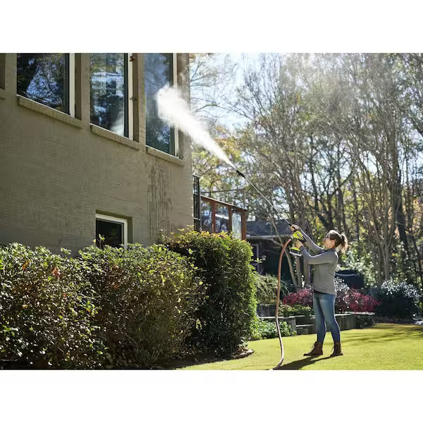 It helps clean high or difficult areas such as gutters, siding, vehicles, and outdoor surfaces.