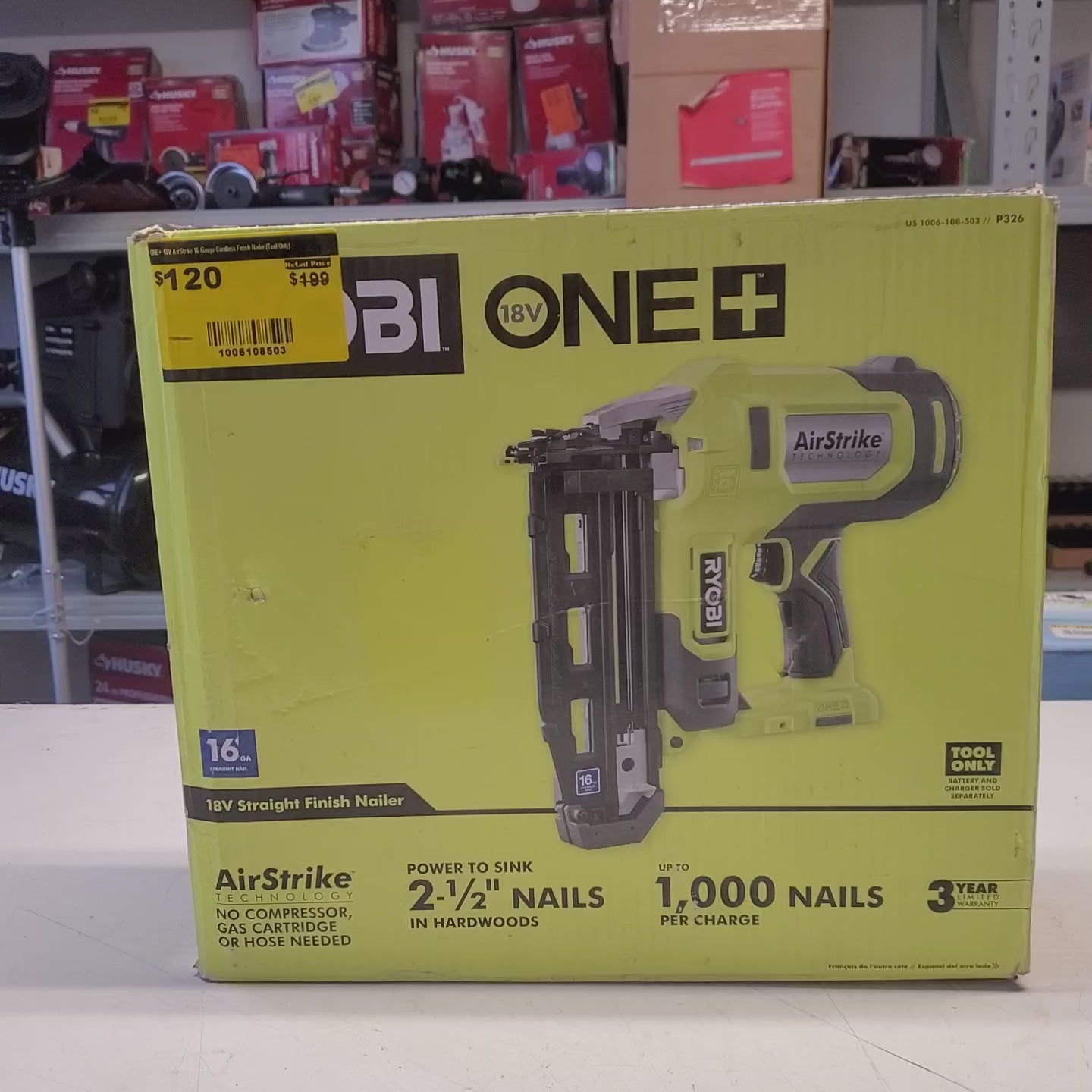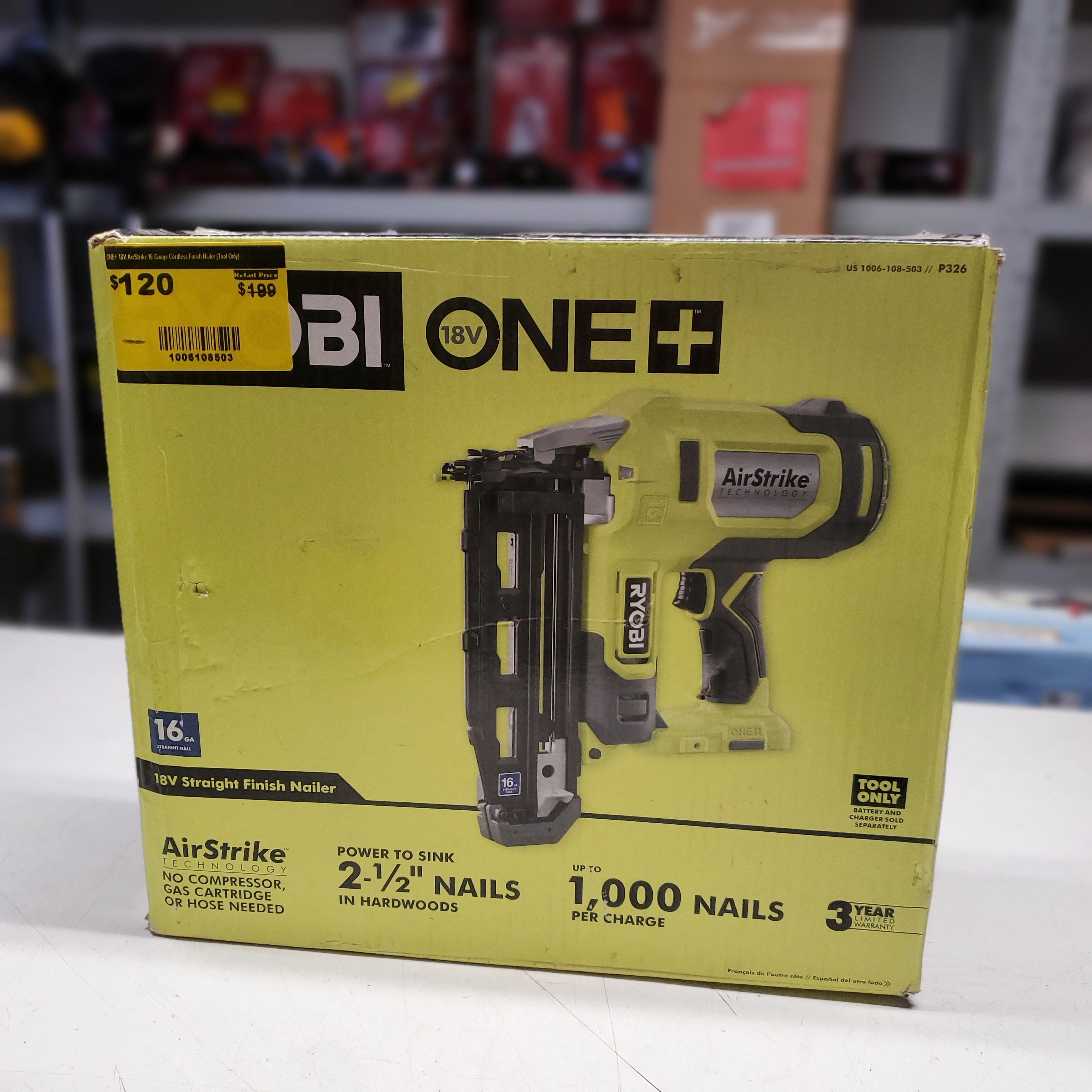 RYOBI ONE+ 18V AirStrike 16-Gauge Cordless Finish Nailer (Tool Only) – Open Box | SKU 1006108503