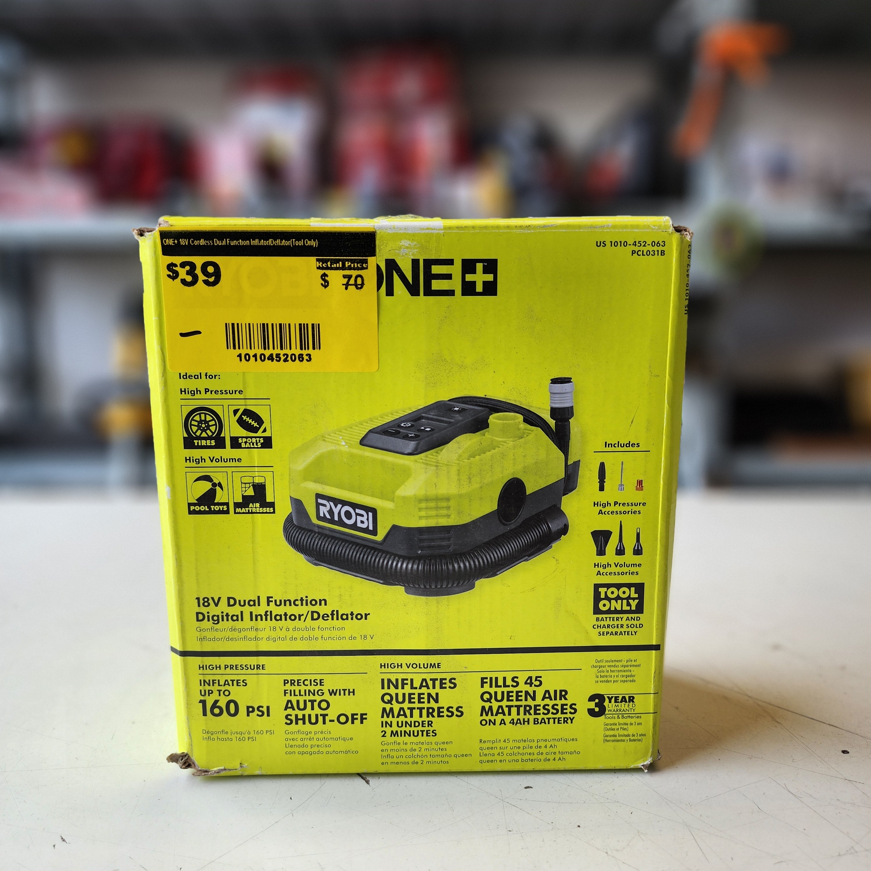 The RYOBI ONE+ Cordless Inflator/Deflator (SKU: 1010452063) is suitable for users seeking a practical solution for everyday inflation and deflation needs. Built to meet durability and safety standards for regular use.