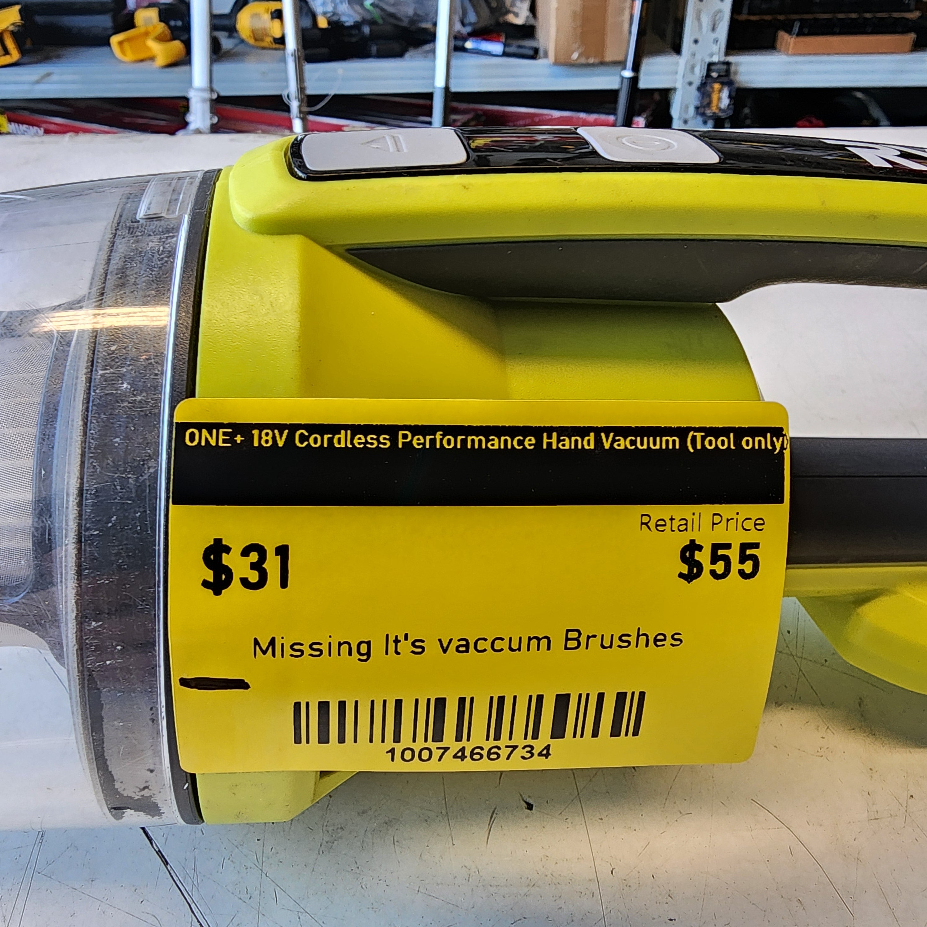 RYOBI ONE+ 18V Cordless Performance Hand Vacuum (Tool only) with out vocume brushes
