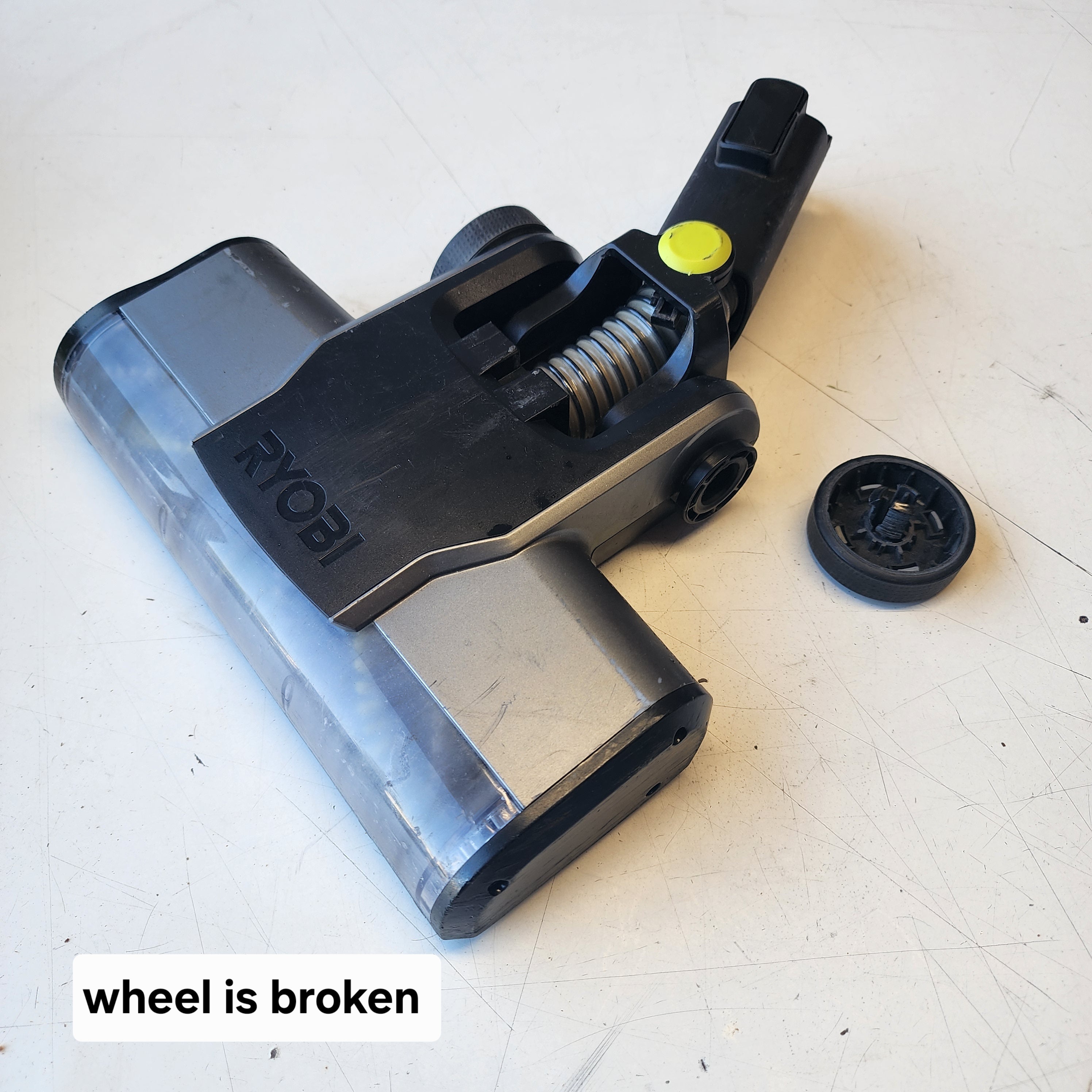 Wheel is damaged, dust brush missing, and battery differs from original kit listing. Fully tested and working. Sold as shown in photos.