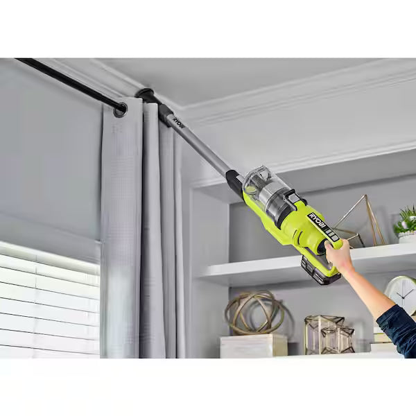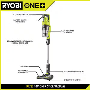 The RYOBI ONE+ 18V Cordless Stick Vacuum Cleaner is designed for convenient cordless cleaning in homes, garages, and workshops. Powered by the RYOBI ONE+ 18V platform, this unit provides portable cleaning without cords.