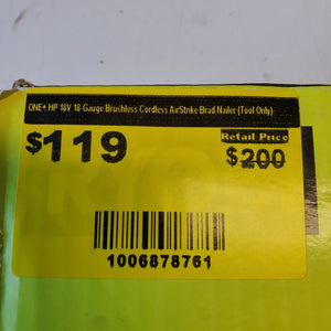 The RYOBI ONE+ HP 18V 18-Gauge Brushless Cordless AirStrike Brad Nailer is engineered for professional-grade finish work with cordless convenience. This unit is open box and barely used, fully tested, and in excellent working condition.