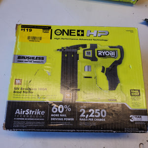 RYOBI ONE+ HP 18V Brushless AirStrike 18-Gauge Brad Nailer – Pro Finish Power (Tool Only, Open Box)