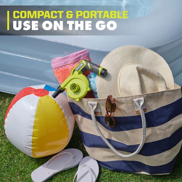 The RYOBI USB Lithium cordless high volume inflator is designed for fast and convenient inflation of large-volume items such as air mattresses, pool floats, and inflatable furniture. Its compact, cordless design makes it easy to use at home, outdoors, or while traveling.